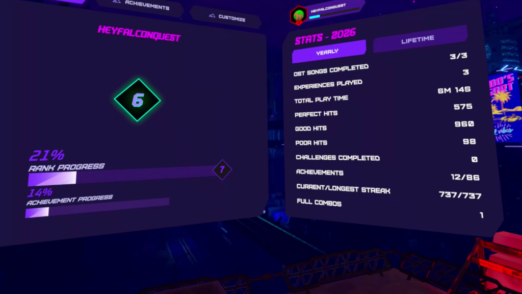 Whether you’re chasing personal improvement, friendly competition, or just love seeing the numbers reflect the hours you’ve put in, progression makes your time in Synth Riders feel visible, tangible, and earned.
